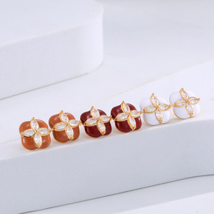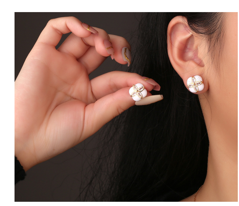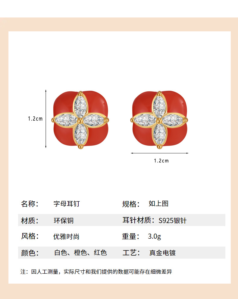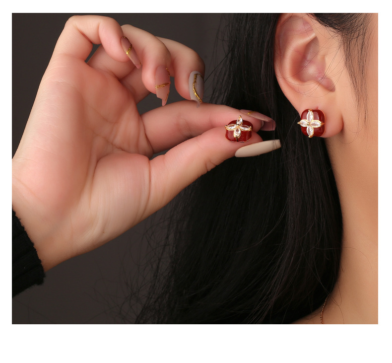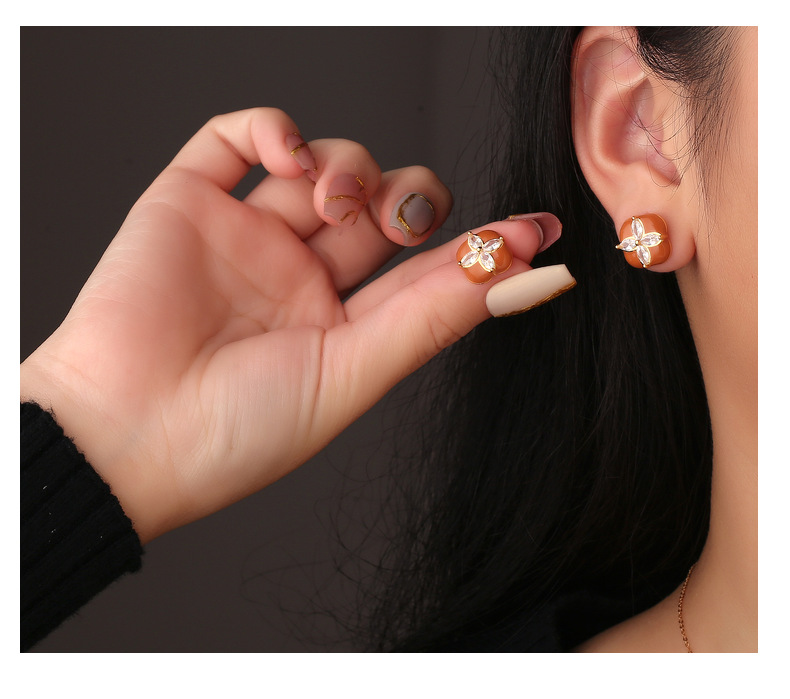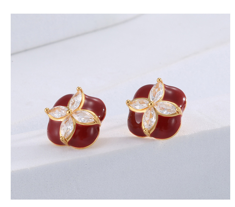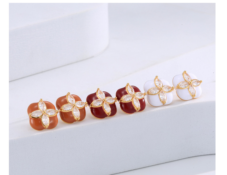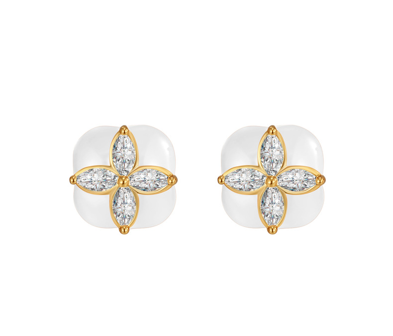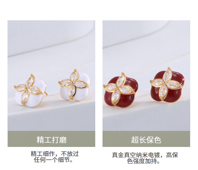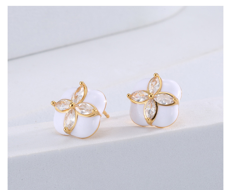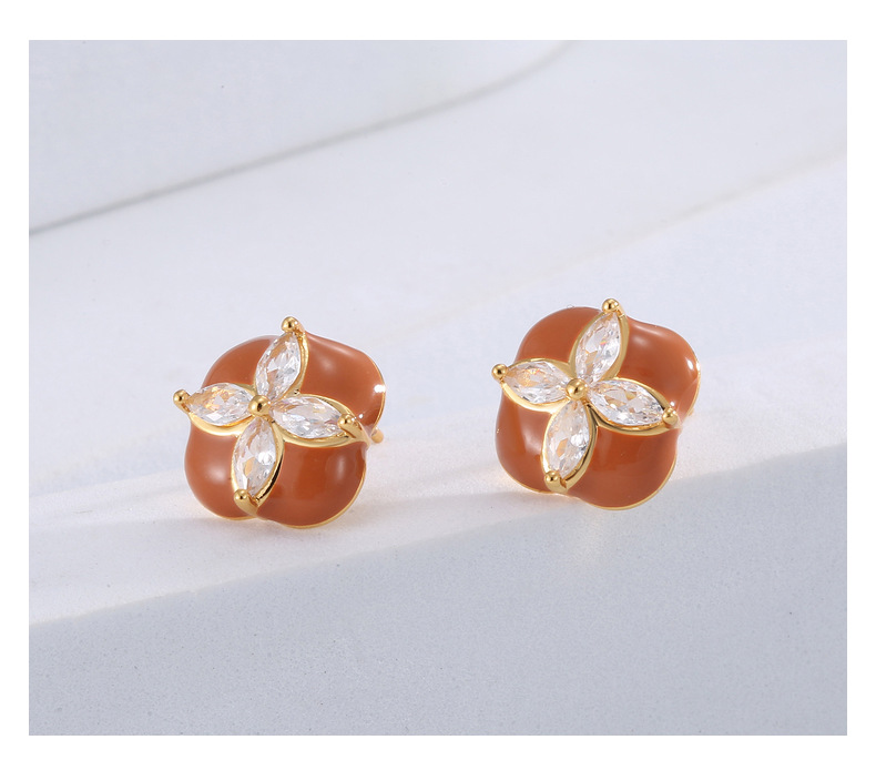 Mini Stud Earrings High Quality Sense Small Exquisite Elegance Enamel Enamel Flowers Zircon Square Earrings Wholesale