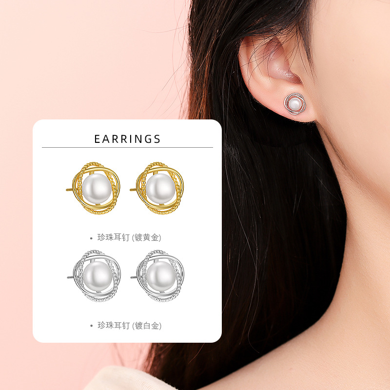 S925 Sterling silver geometric winding pearl earrings for women fashion simple compact art advanced sense nourishing ear piercing ear bone stud
