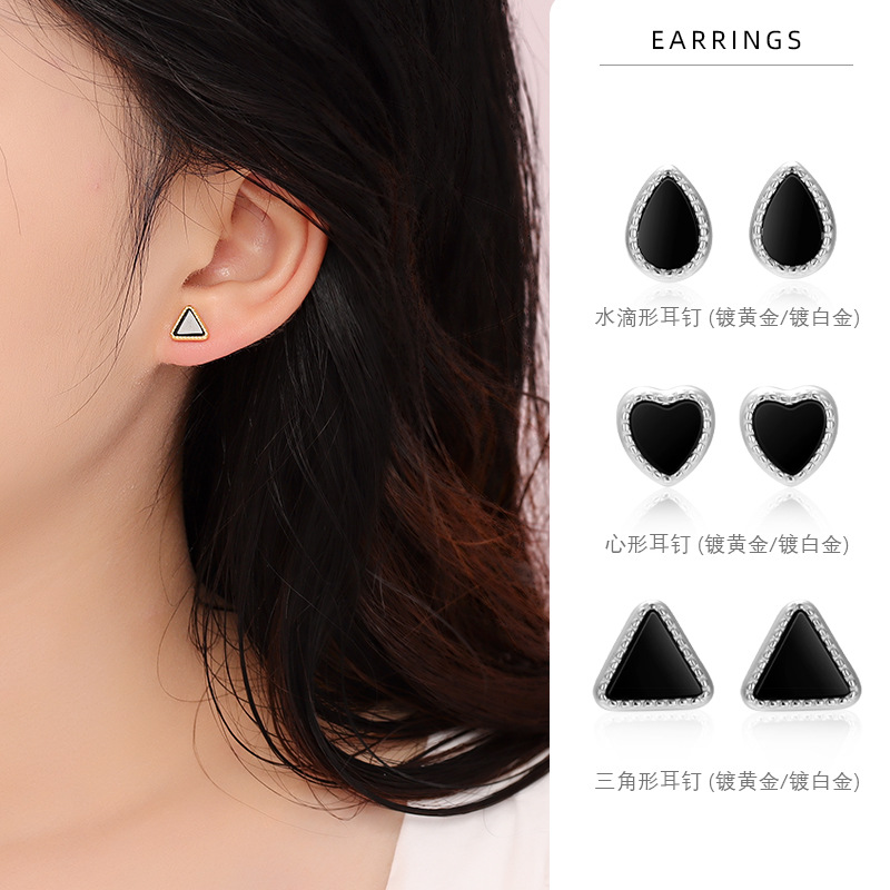 S925 Sterling silver geometric agate earrings Simple temperament Love triangle water drop earrings advanced sense earrings