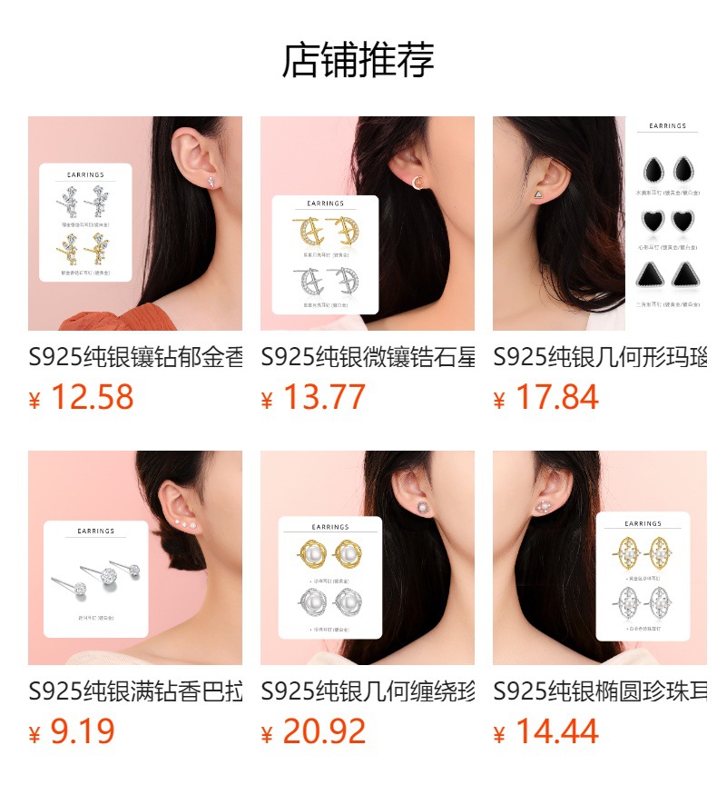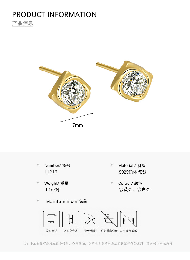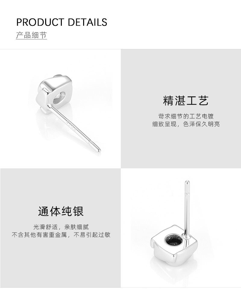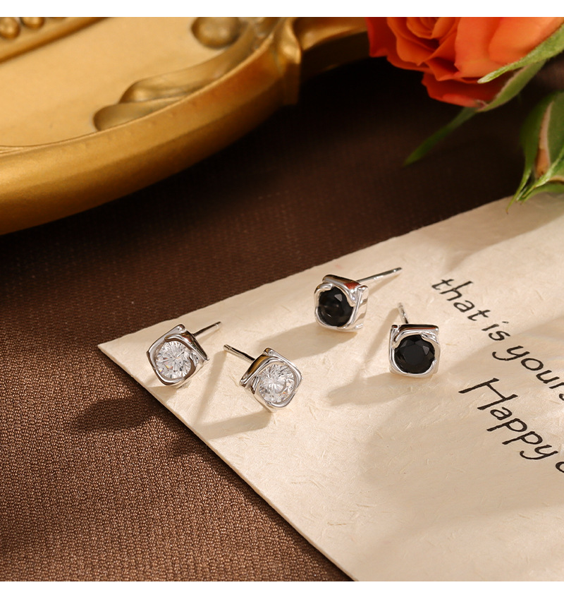 S925 Sterling Silver Full diamond-Chambala stud Female 4/5/6mm Czech Diamond-student compact personality piercing ear stick