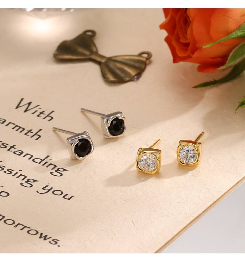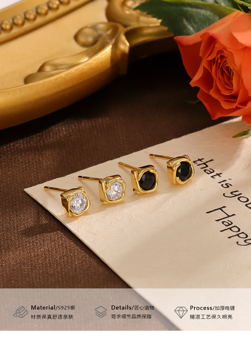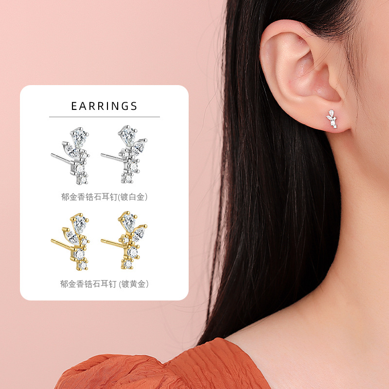 S925 sterling silver diamond tulip zircon earrings Japan and South Korea fashion temperament K-gold plated small luxury women's earrings